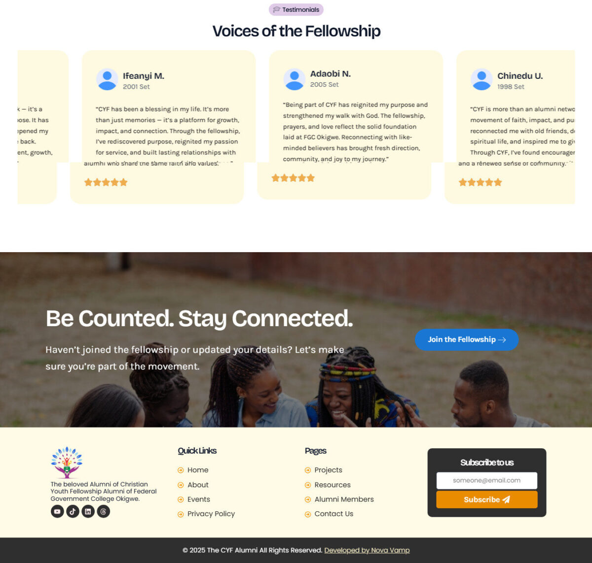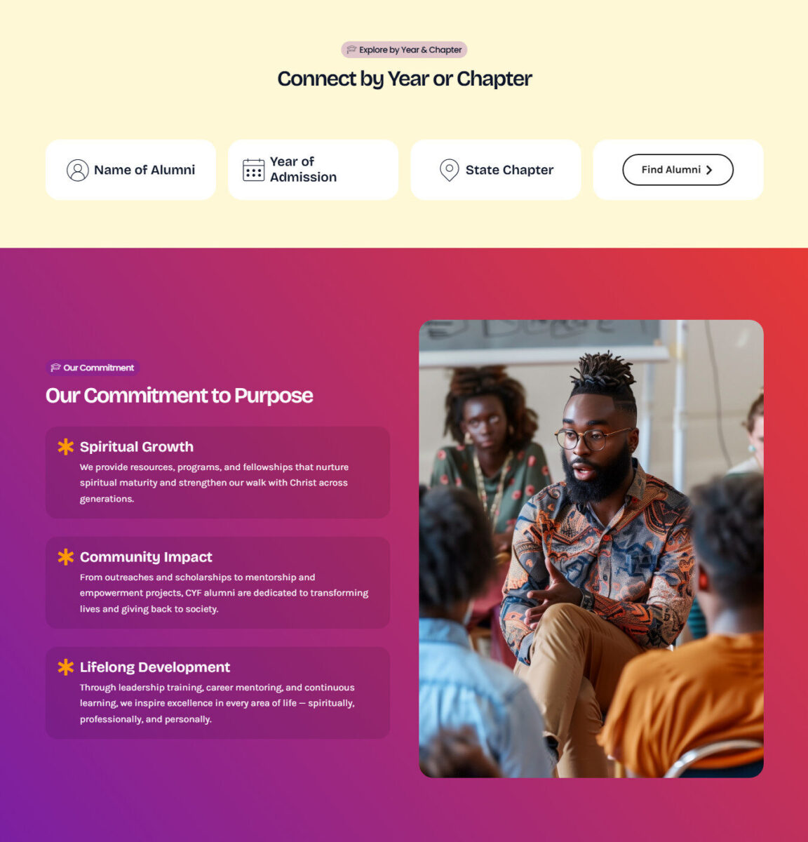 The client lacked a modern, engaging online presence that reflected their community‑and‑faith‑based identity, facilitated event listings, alumni directories, and resource sharing. Their previous solution was out‑dated, didn’t support year/chapter filtering of alumni, and wasn’t aligned with mobile usage.
